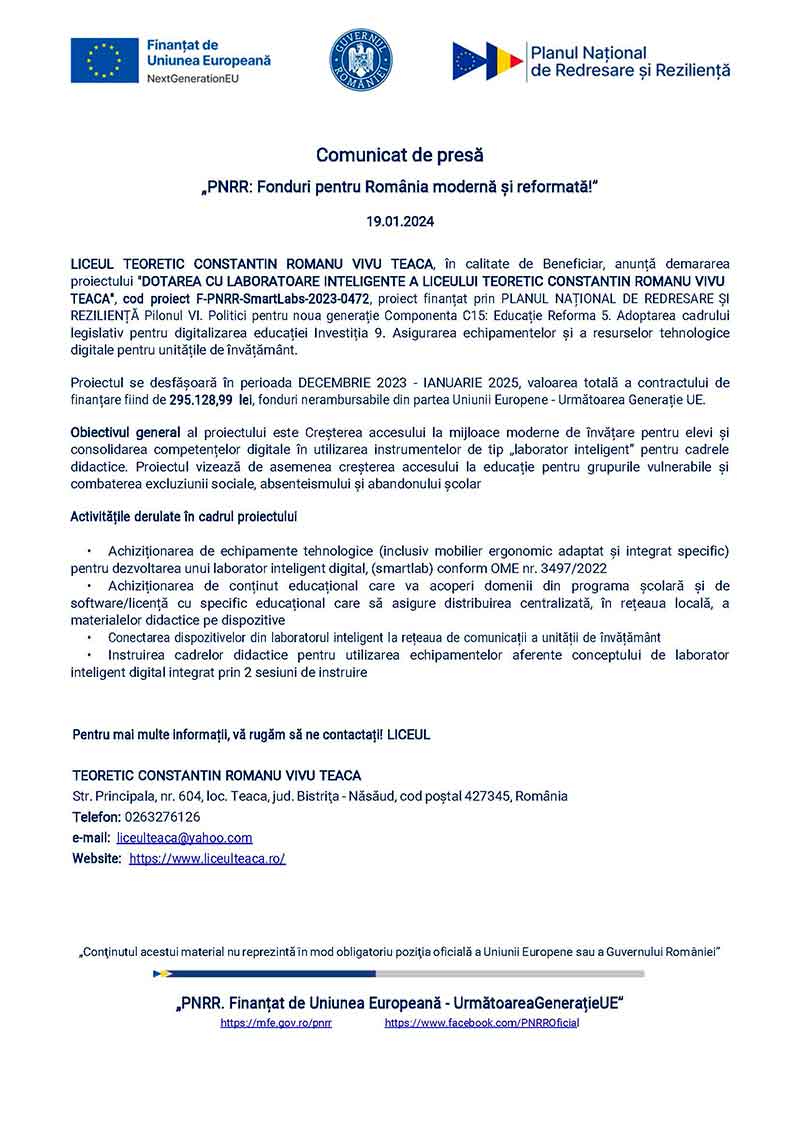 COMUNICAT DE PRESĂ
